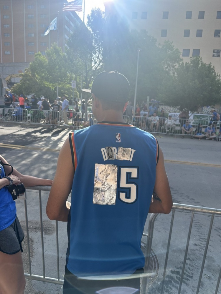 At the scene, a fan was wearing a "Dotter" jersey, which shows that the original version should be a Durant's No. 35 jersey.