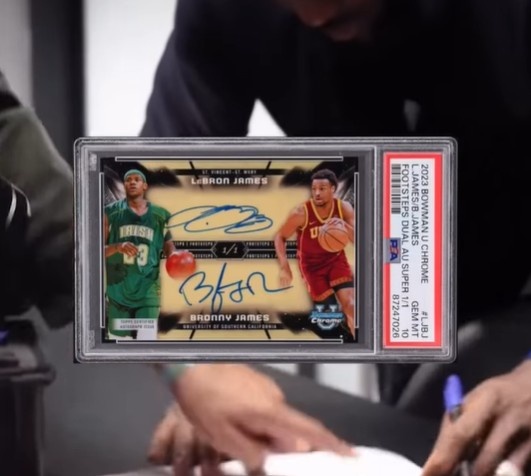 Star Cards Topps social media updated the news and posted a video of James signing a double signature card for himself and Bronny for the first time.