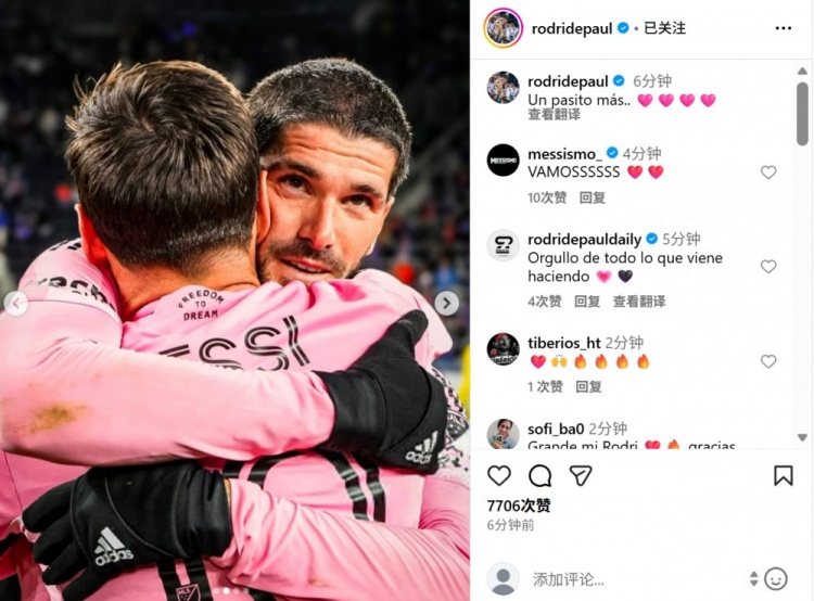 Big win and promotion! DePaul posted a photo hugging Messi on social media: One step further🩷🩷