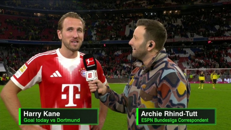 In the seventh round of the Bundesliga, Kane scored with a header to help Bayern defeat Dortmund 2-1 at home. He accepted interviews with the media after the game.