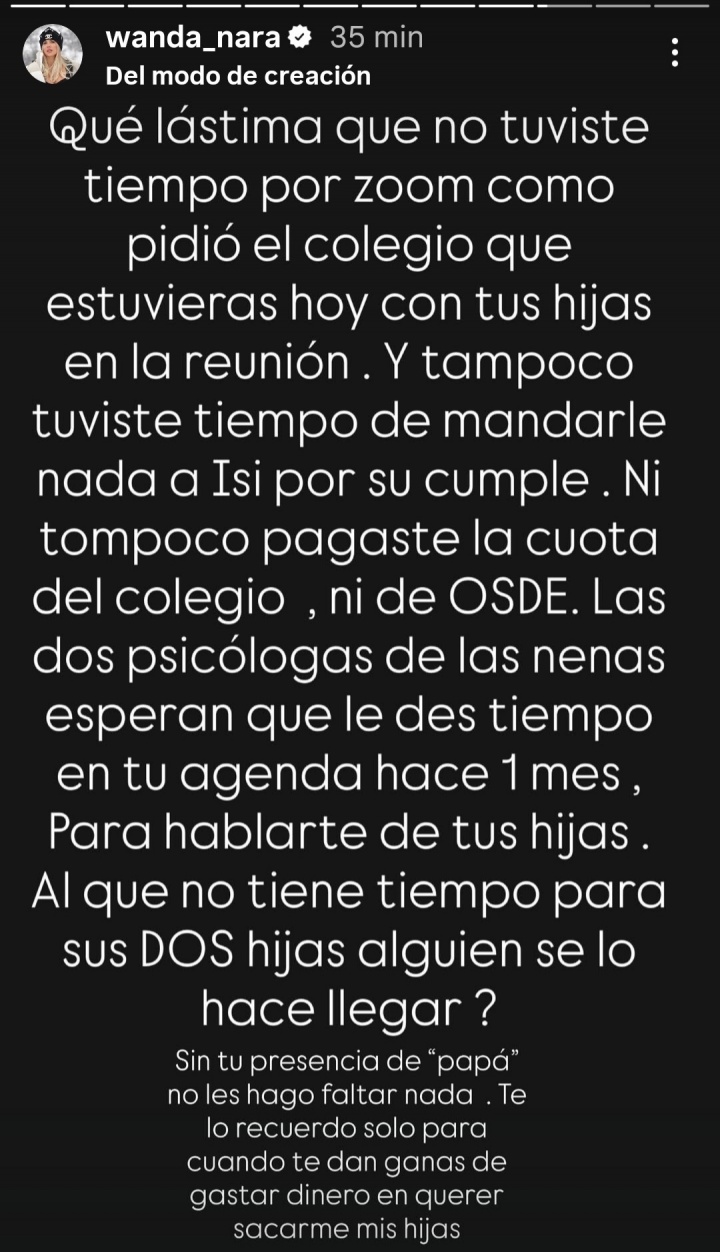 Wanda angrily criticized Icardi: not going to parent-teacher conferences, not paying tuition and insurance for her daughter, not going to birthdays
