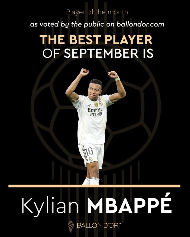 Official news from the Ballon d’Or, Mbappe was elected the Ballon d’Or best player for September.