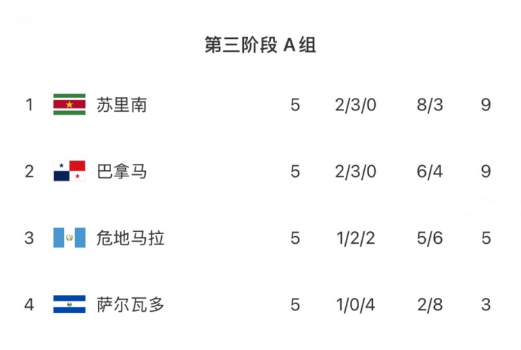 In the 5th round of Group A of the third stage of the North American World Cup, Panama defeated Guatemala 3-2. In the standings, Suriname and Panama are in the top two with 9 points, and Guatemala is in third place with 5 points. They missed the World Cup one round ahead of schedule. In the final round of the group stage, Panama will face El Salvador and Suriname will face Guatemala. The group leader will directly advance to the World Cup.