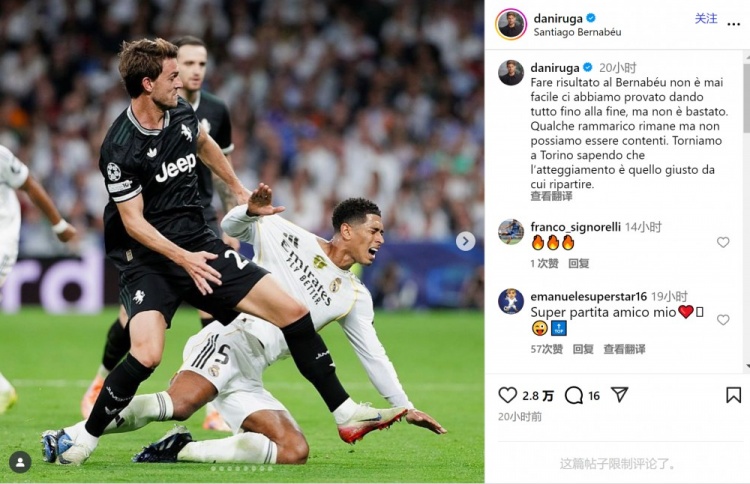 Rugani played the entire game for Juventus. He posted photos of the game on social media with the following text: "It is never easy to achieve good results at the Bernabeu Stadium. We fought hard until the last moment, but it was still not enough."
