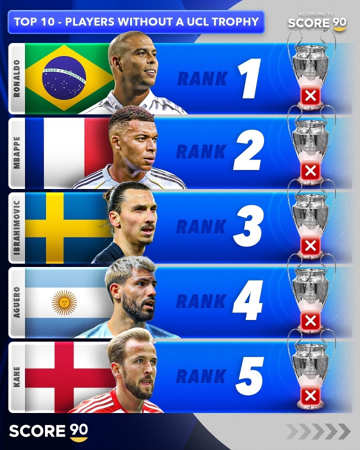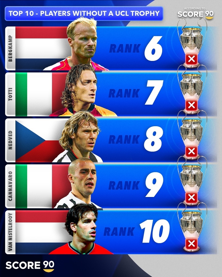 The foreign media Score90 list of the top 10 Champions League players: